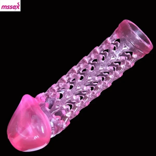 Net hole shape male extension sleeve reusable condoms for men, realistic extender sleeve