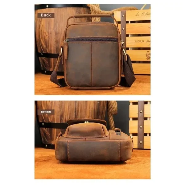 Exterior : Flap Pocket Interior : Interior Slot Pocket,Cell Phone Pocket,Interior Zipper Pocket,Interior Key Chain Holder,Interior Compartment Hardness : SOFT Closure Type : zipper Pattern Type : Solid Gender : MEN Style : vintage Lining Material : POLYESTER Main Material : Genuine leather Shape : Box