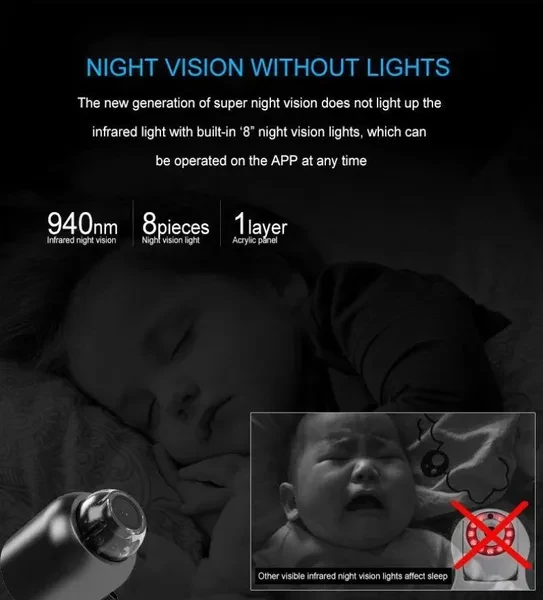 ● Built-in 8 night vision light, which can be operated on the APP at any time. Motion detection alarm ● Camera supports intelligent mobile alarm function.