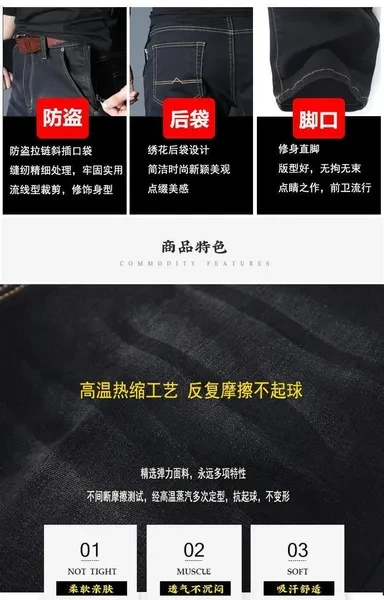 Color: blue, black Product category: jeans Elasticity: high elasticity Length: trousers Waist type: high waist Size: 32, 33, 34, 36, 38, 40, 42, 44.46, 48 Special process: water washing Thickness: ordinary Fabric Name: Cotton Applicable scenario: Leisure Applicable gender: Male Trouser type: straight tube type Suitable season: spring &summer Style details: Pocket decoration Style: Korean version Error range: 1-2cm Hem style: straight Package price: 1 x jean Noticel: 1. This is an Asian size, usually smaller than the US / European size. Please check the size chart carefully before placing an order. 2. If you can't choose the right size, please leave a message in English, telling your height (CM) and weight (kg), and then we will help you choose the right size. 3. The picture shows 100% rear object photography. However, different computers display colors in different ways. The actual projection color may be slightly different from the real object color. 4. Our size table is based on the actual product, please allow 1-3cm difference due to manual measurement. 5.. If you are satisfied with the goods, please give praise. If you have any questions, please feel free to contact us. 6. Welcome to visit our store, maybe you will find other products that you are interested in. Have a good day shopping!