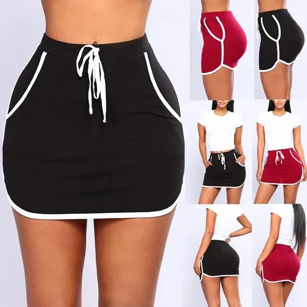 New Package Hip Short Skirt High Elasticity Waist Stripes Stitching Mini Skirt Fitness Slim Short Mini Skirt
