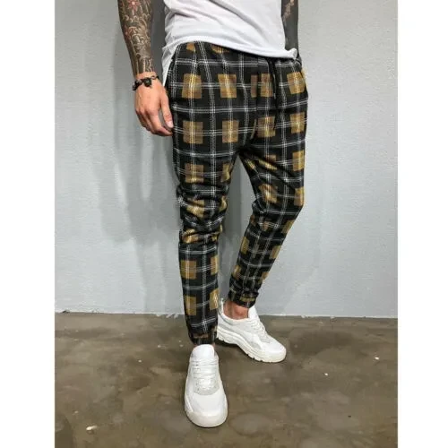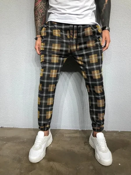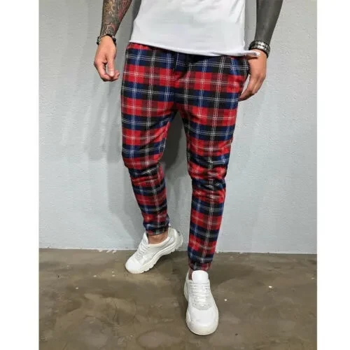 New Pop Fashion Men Plaid Casual Pants Joggers Slim Fit Skinny Casual Pencil Trousers