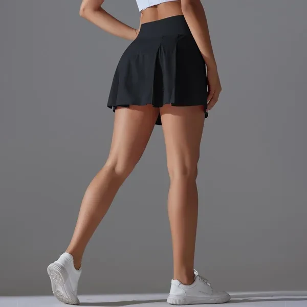 New Solid Color Double-Sided Nylon Tight High Waist Fake Two-Piece Tennis Sports Skirt Running Fitness Yoga Shorts Women