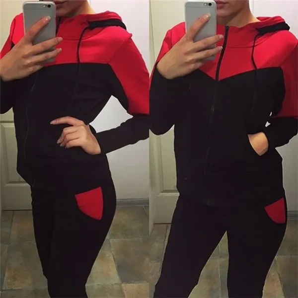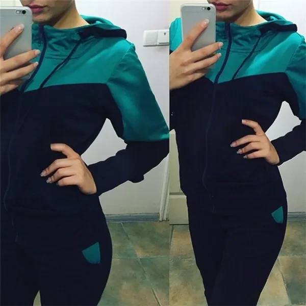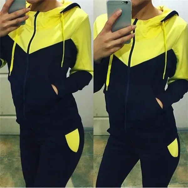 New Women Color Stitching Hooded Coat Tracksuit Lady's Casual Cotton Sport Suit Hoodies Loose Jogger Suit