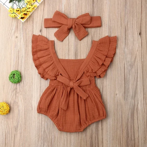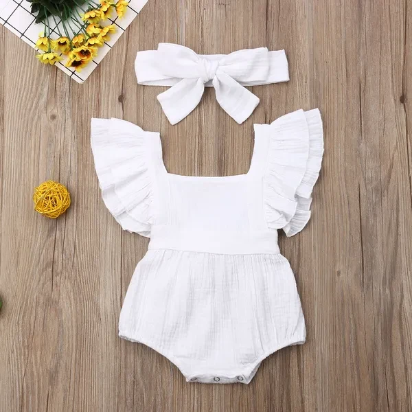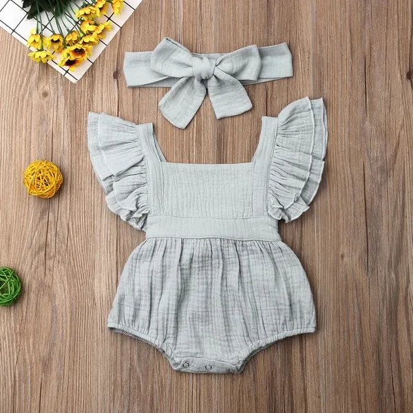 Hello! Welcome to our store! Quality is the first with best service. customers all are our friends. Fashion design,100% Brand New,high quality! Style: Fashion Material: Cotton Blend Color: As picture Size:70/80/90/100 There is 2-3% difference according to manual measurement. Please check the measurement chart carefully before you buy the item. Please note that slight color difference should be acceptable due to the light and screen. What You Get:1 x Romper + 1 x Headband