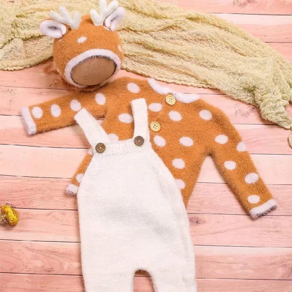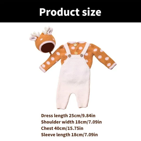 <p>Features: 3pcs/set newborn photography props, lovely deer hat and pants with tops set that's perfect for holiday themed photoshoots. Craft from soft, breathable knit fabric, which ensures comfortable wear. Designed specifically for newborns, great for baby aged 0-1 month, providing comfortable fit. Great for special occasion such as christmas celebrations, family gatherings, and professional newborn photography. Not only adds touches of seasonal charm to your baby photos but also makes for exquisited gift for new parents. Specifications: Fabric: Knitting Acrylic Fiber Size: Clothing length 25cm/9.84", shoulder width 18cm/7.09", chest circumference 40cm/15.75", sleeve length 18cm/7.09" Package Includes: 1Pc Baby Photography Sweater 1Pc Knitted Strap Pants 1Pc Matching Hat note: Please allow 1-2cm errors due to manual measurement. Please allow for slight color differences due to different display resolution. </p>