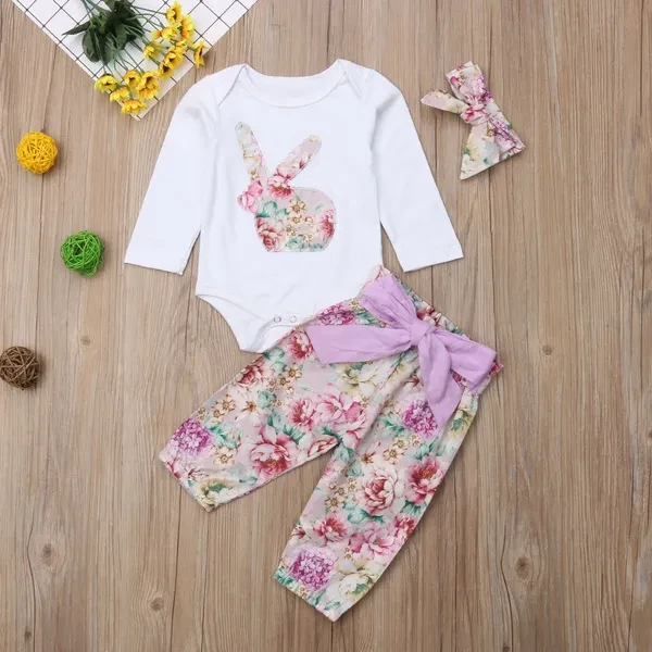 Newborn Infant Baby Girls 2PCS Clothes Set Romper Tops Floral Long Pants Headband Outfits 0-18M