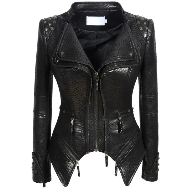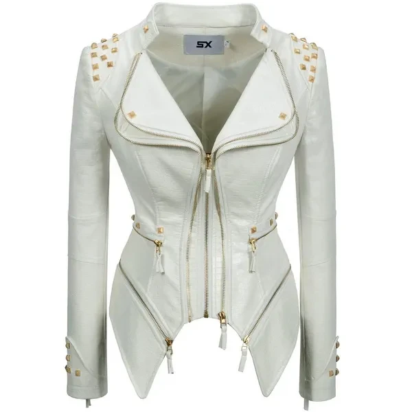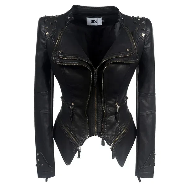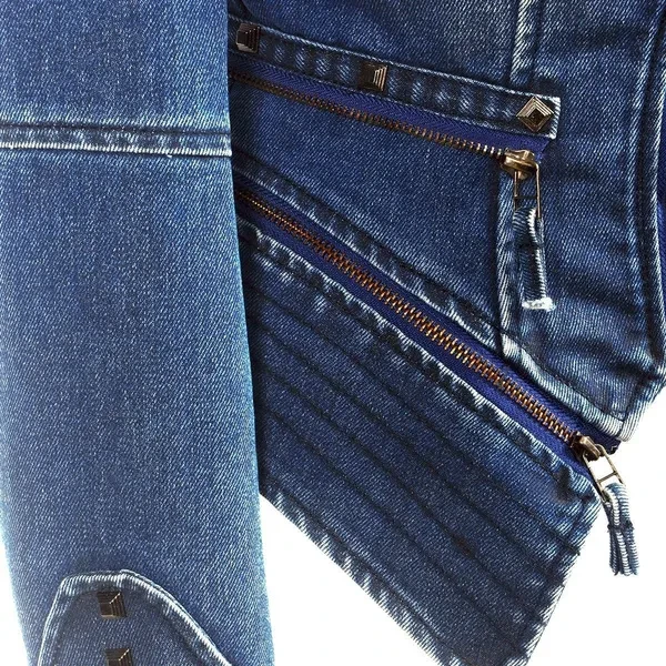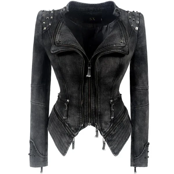 Occident Punk Women slim Blue Denim Motor Jacket female Classic Rivet zipper short coat