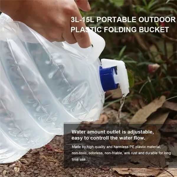 This is a collapsible plastic water bucket made of PE plastic material, it is non-toxic, durable, reusable, lightweight and safety for your outdoor camping, hiking, travelling, picnic and other outdoor activities. Features: Made by high quality and harmless PE plastic material, non-toxic, odorless, non-friable, anti rust and durable for long time use. Collapsible and portable, lightweight for easy carrying and space saving storage. User friendly design with a carrying handle and screwing cap. Water amount outlet is adjustable, easy to control the water flow. Suitable for camping, hiking, travelling, picnic, household and other outdoor activities. Provide 3L, 5L, 8L, 10L and 15L capacity for your option in accordance with your needs. Specifications: Material: PE Color: transparent color Temperature Range: -20℃ ~ +80℃ Capacity: 3L(about104g),5L(about132g), 8L(about148g), 10L(about174g), 15L(about272g) Package List: 1 * Collapsible Water Bucket Notes: 1. Please do not make it close to the fire. 2. Please allow 0.2 inch error due to manual measurement, thanks for your understanding.
