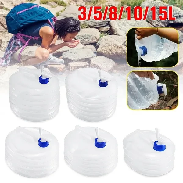 Outdoor Camping Hiking Travelling Collapsible Water Bucket Portable Lightweight Folding PE Plastic Water Kettle Bottle Basin Washing Tool 3L/5L/8L/10L/15L