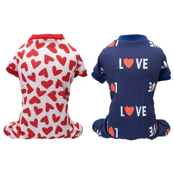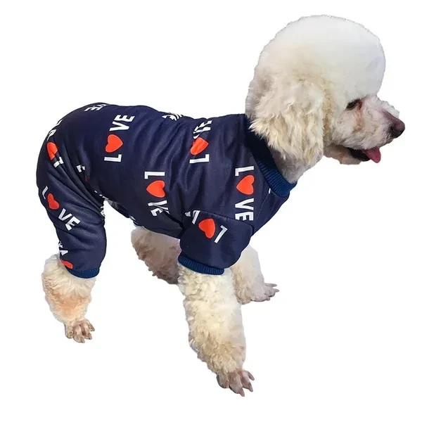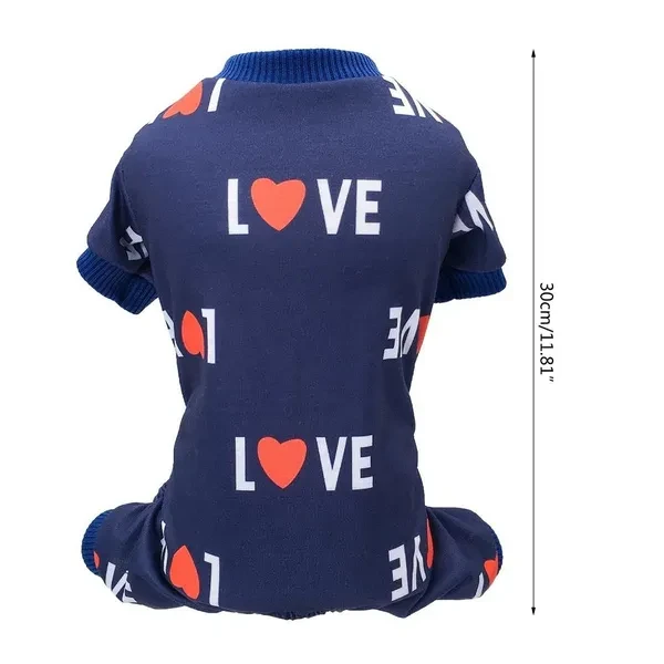 Features: Keep your friend warm with this cute Love Heart Print Four Leg Dog Romper. Made from polyester, it provides comfort for small dogs. This pet romper features a convenient four legged designed, making it easy to put on and take off. It is also machine washable and durable for long lasting use. Perfect for dog owners who enjoy dressing up their pets, especially those with small dogs. Give your pet a fashionable look! Whether its for outdoor activities during winter, indoor relaxation, or daily walks, this pet romper clothes will protect your dog from the cold weather. Let your pets unique personality shinewith this romper. Let them stand out and be the center of attention wherever you go Specifications: Material: Polyester Style Option: DarkBlue/RedColor Size Option: S/M/L Product Size: Approx. Back length 30cm/11.81inch Note: Please allow 1-2cm errors due to manual measurement. Due to the difference between different monitors, the picture may not reflect the actual color of the item. Package includes: 1x Pet Clothes