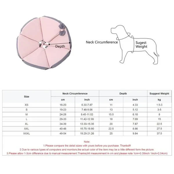 Features: With this collar, pet could walk, eat, drink ... Our recovery collar come in different size to fit various neck circumferences. You can measure your cats neck before order to avoid trouble with subsequent purchases. Prevent pet from aggravating wounds and injuries so they can heal faster while drink normally. Bring more protections for wounds. Soft material, the recovery collar is light. Specifications: Material: Cloth Color: 4 Option Note: Please allow 1-2cm errors due to manual measurement, make sure that you donot mind before order. Due to the differences between different monitors, the picture may not reflect the actual color. Package includes: 1x Pet Recovery Collar