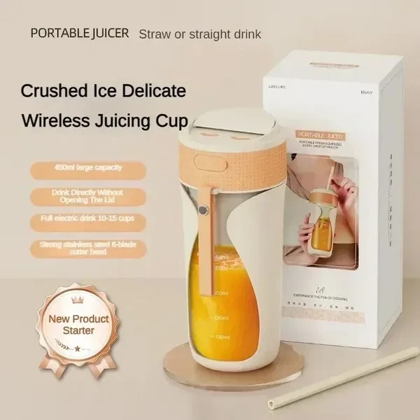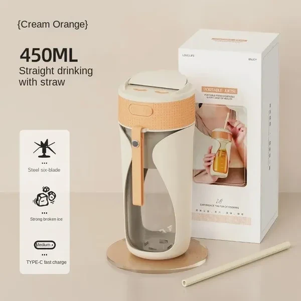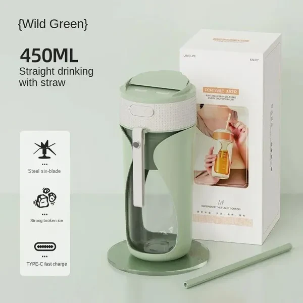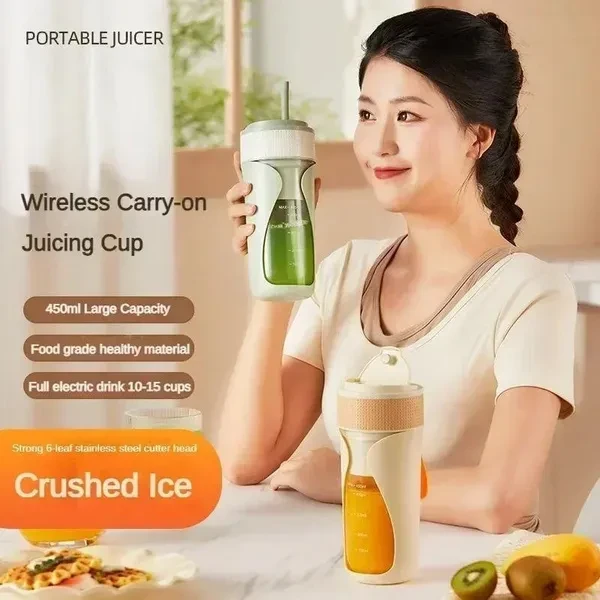 Portable Electric Juicer 450ml USB Rechargeable Fruit Juice Machine Wireless Fruit Blender Smoothie Blender Home Kitchen Gadgets