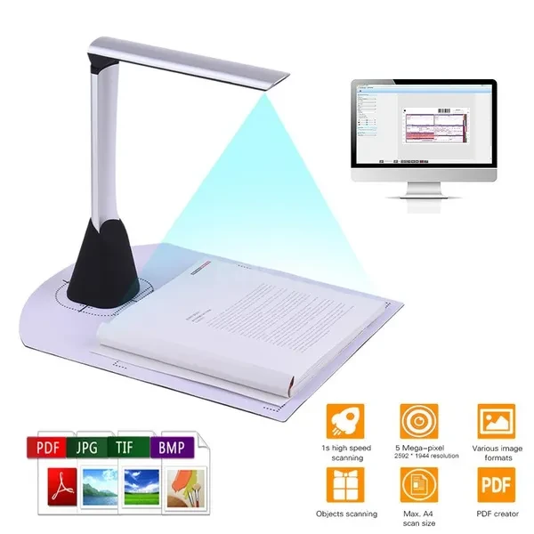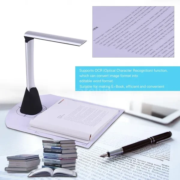 Portable High Speed USB Book Image Document Camera Scanner 5 Mega-pixel HD High-Definition Max. A4 Scanning Size with OCR Function LED Light for Classroom Office Library Bank