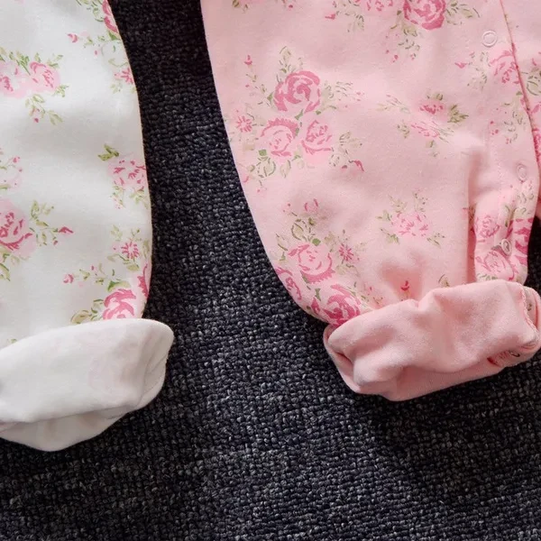 Material: 100%Cotton Style: Floral Princess Girls Rompers Set (Legs can buckle up,into a sleeping bag) Size: 59-66-73-80/for 0-12months baby Package: 1 X Girl Rompers + 1 X Hats with OPP bag