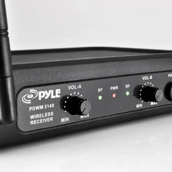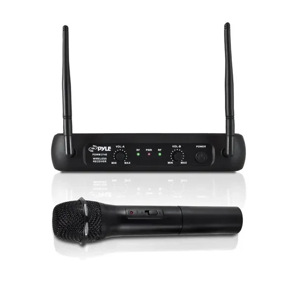 Find your voice and rely on the Pyle Pro PDWM2145 VHF Wireless Microphone System for clear, noise-free wireless transmission and sound reproduction no matter the event. Simple to set up and use, this system includes a receiver, 2 body-pack transmitters, 2 Lavalier microphones, 2 headset microphones, and a 0.25-inch audio connection cable. This system features a dual frequency design (channel A/B), high signal/noise ratio performance, and independent adjustable volume control. For excellent sound no matter the venue or event, choose the Pyle Pro PDWM2145 VHF Wireless Microphone System today.