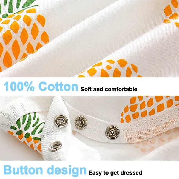 Size chart: Size / Recommended Height / Length / Bust / Shoulder Widt / Leg Circumference / Hip Circumference 0-6 months 66cm 42 50 21 24 58 6-12 months 73cm 45 52 22 24 60 12-18 months 80cm 48 54 23 26 62 18-24 months 90cm 51 56 24 28 64 Hello, welcome to my shop! Our products are ready stock, we will arrange shipments for you within 24 hours. We ship from China, it usually takes 15-40 days to arrive. If you have any questions, please contact me via chat. Please delay your response during public holidays. Thank you! Q: Is it available? Is it in stock? A: All those who can order are in stock. Q: When will it be shipped? A: Shipped on the same day, and also on Saturday and Sunday. Introductions: As a new mother, it is very important for you to choose a suitable baby romper for your beloved son from the various products on the market! Now please pay attention to these Baby Boy Pure Cotton Triangle Short Sleeve Jumpsuits Rompers which are highly recommended to you. It is made of high quality material, durable and great for wearing for a long time. The cute pattern and color will let your baby look lovely and energetic. The simple design allows you to change diapers for your baby easily. What's more, it touches softly and gently, which will not hurt baby's tender skin. It will be the best choice for you to choose to your baby! Features: 1. New and high quality. 2. Easy for changing diapers. 3. So lovely elegant dress is perfect to wear in any occasions. 4. It touches very softly and gently, so that it will not hurt the tender skin of the baby, it is absolutely the best choice of caring mommy. 5. This design is very lovely and matches with the lovely little baby very well. Specifications: 1. Color & Pattern: 7 colors 2. Material: Cotton 3. Size: 0-24M 4. Suitable for: Baby Boy & Girl 5.Item Type: Sleeveless Rompers 6.Pattern Type:Cartoon 7.Closure Type:Covered Button 8.sleeve:Short sleeve 9.Collar:O-neck 10.pattern:Print 11.Fit:Fits true to size, take your normal size 12. Washable: Yes Package Includes: 1 x Rompers Size chart: Size / Recommended Height / Length / Bust / Shoulder Widt / Leg Circumference / Hip Circumference 0-6 months 66cm 42 50 21 24 58 6-12 months 73cm 45 52 22 24 60 12-18 months 80cm 48 54 23 26 62 18-24 months 90cm 51 56 24 28 64