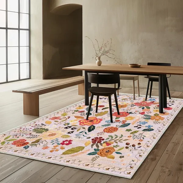 Regional Carpet Living Room Carpet Soft Machine Washable Bohemian Farmhouse Neutral Anti Staining Indoor Carpet Bedroom Dining Table Home Office Decoration