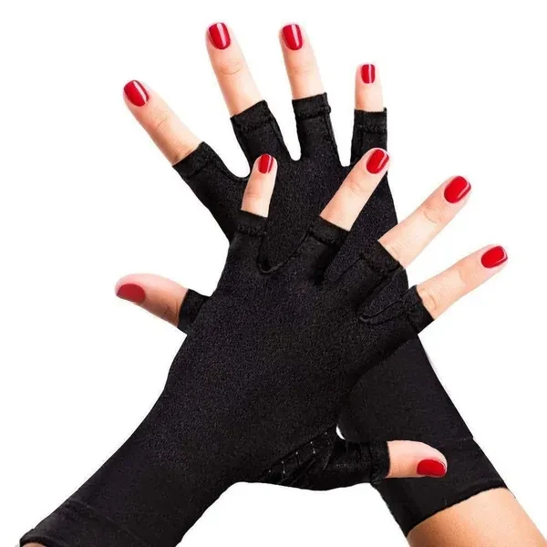 Product name: Arthritis rehabilitation gloves Material: Cotton nylon and spandex blended fabric, can be worn all day. Size: S M L Colour: Black Quantity: 1pcs Function: Relieve hand pain and swelling caused by arthritis, promote blood circulation, work and outdoor activities