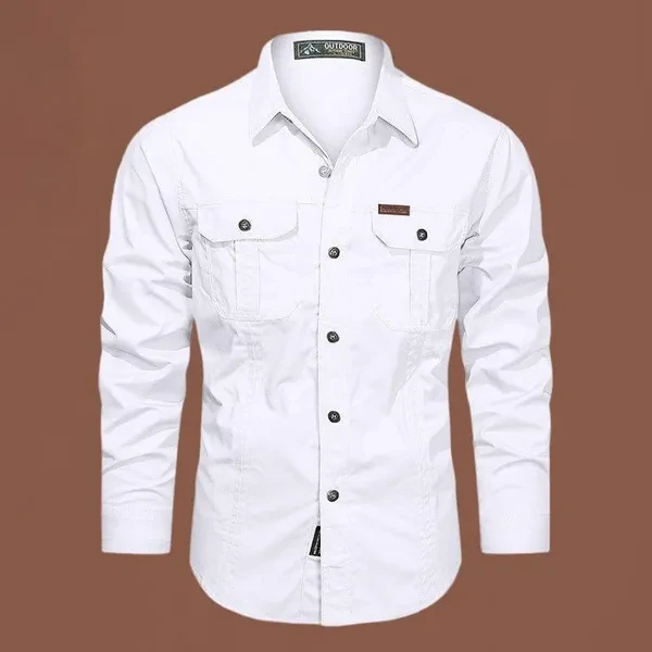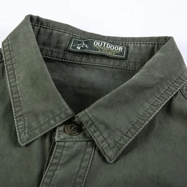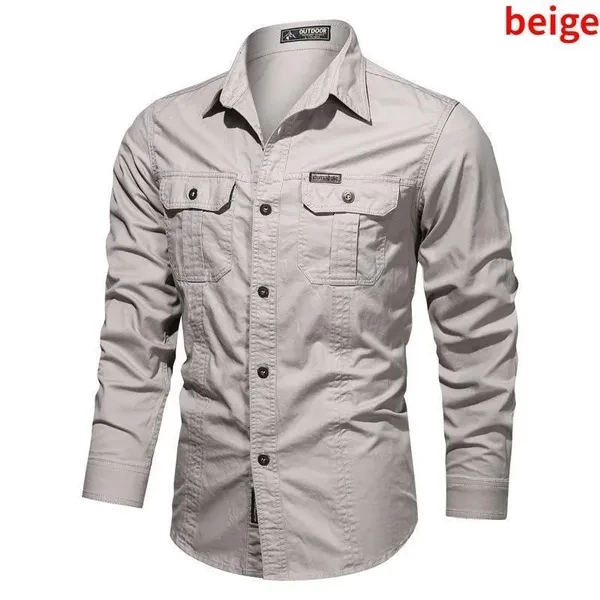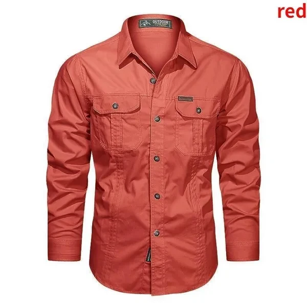 Retro Cargo Style Men's Long Sleeved Shirts with Pockets Men's Casual Button Up Shirts Spring Autumn Military Shirts