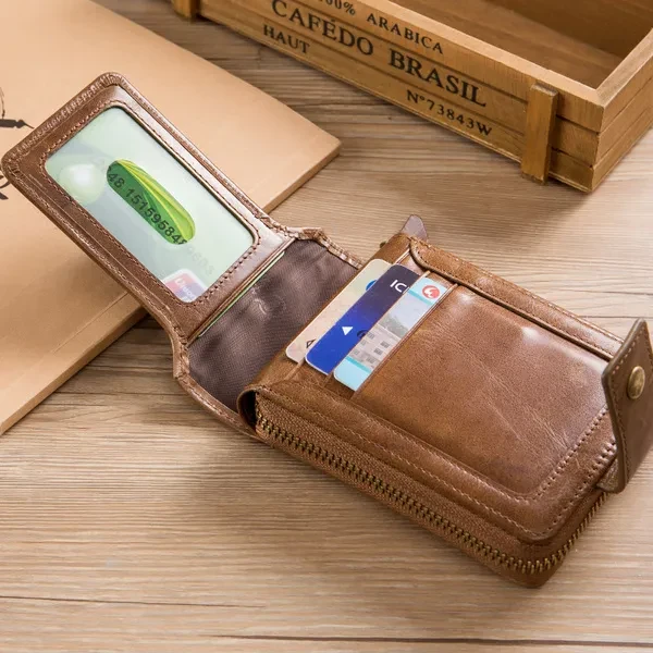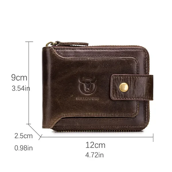 Men's Leather Wallet: Genuine leather,with breathable polyester lining. Size and Color : 4.72(L)*3.54(W)*1.18(H)(in). Weight: 015kg. Black, brown and coffee, 3 different colors for your needs. (Please allow 0.3"-0.9" in size error due to manual measurement.) Safety, Privacy and Security : Our wallets are equipped with advanced RFID SECURE Technology, a unique metal composite, protect the valuable information stored on RFID chips from unauthorized scans. Men Wallet with Zipper : Large Capacity: 12 card slots + 2 cash compartments + 1 driver's license / ID/ photo window + 1 zip coin pocket. It’s easy to carry all your important cards and meets all your daily needs. !!!Please pay attention that this wallet is not a slim / Minimalist style, if you are looking for something slim / thin, this one might not be the right one for you. The wallet is large capacity, but not bulky. It fits in your back/front pocket. Features : This men wallet is both fashionable and functional. Features the special design and the nice structure. Hope this wallet could be your loyal friend keeping company with you for every adventure both near and far.