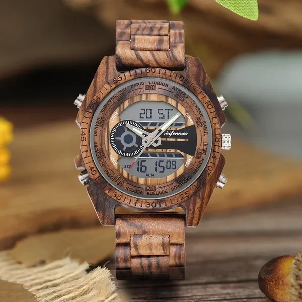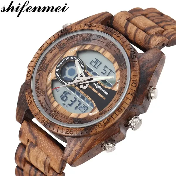 Brand Name: shifenmei Style: SPORT Clasp Type: Folding Clasp with Safety Water Resistance Depth: No waterproof Movement: QUARTZ Movement: Dual Display Case Material: Wooden Band Length: 21.5inch Dial Window Material Type: Glass Case Thickness: 15mm Band Width: 21.5mm Case Shape: ROUND Item Type: Quartz Wristwatches Boxes & Cases Material: Wood Model Number: Shifenmei Band Material Type: Wooden Feature: Stop Watch Feature: Back Light Feature: LED display Feature: Repeater Feature: luminous Feature: Chronograph Feature: Water Resistant Feature: Alarm Feature: Week Display Feature: Luminous Hands Dial Diameter: 51mm Watche Type: Men watch fashion sport watches Watches Style: Sport watch shock resist Watch Design: Wood watch men Gender: Dual Time Digital Watch for Men Suitable for: Business,casual,indoor activities or daily use Function: Digital Watch Men Top Luxury Brand Function1: Men Sport Casual Led Watches "Package included: -1 * Watch. -1 * Gift Box. -1 * Manual Instruction. Please give us a five-star feedback if you are satisfied with our products and service.
