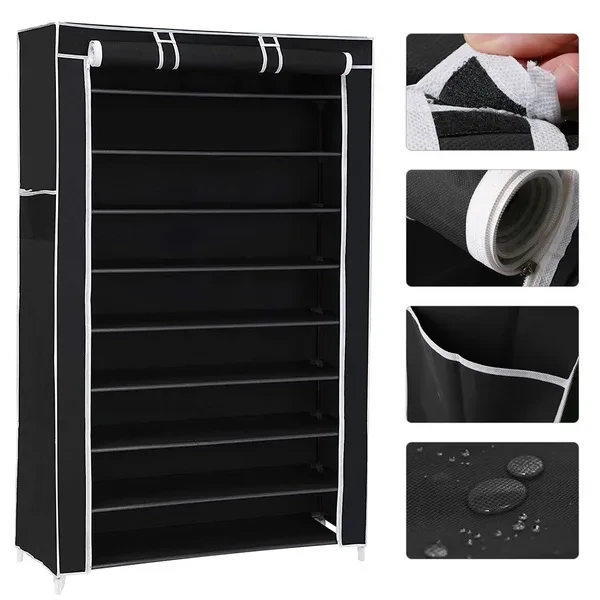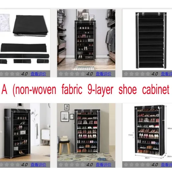Features: styles A: Non-woven 9-story shoe cabinet - Material: metal tube, non-woven cover - Tube thickness 0.22mm Tube diameter 12mm - Expanded size 88*28*160cm Packing: 90*20*10 cm Wide range of uses - Large capacity, easy assembly and disassembly, space saving, very good appearance, beautiful space, very good extra product, suitable for your room, living room, balcony, storage room or garage. Stable metal frame - Metal structure is rust-proof, very strong and stable. Each wall can withstand loads of up to 5 kg under a uniform load. The maximum load of the boom is 25 kg to better meet your needs. Non-woven resistant cover - Covers 95G of non-woven fabrics, breathable, moisture-proof, flexible, lightweight, non-toxic, odorless. Rolling Doors - Designed with 2 rolling doors, it is easier to open and close doors and dust to protect your belongings. Comes with a Velcro and zip to prevent the door from falling. Sewing zipper for more wear-resistant sturdy plastic parts - good quality, durable, sturdy and odorless plastic parts, heat resistant and easy to assemble Details: - Tired of stacking your belongings anywhere, never finding a place for them? This beautiful fabric wardrobe may be the solution! With its perfect exterior finish, it will fit a small room or match the décor of your home. - This wardrobe has a wardrobe and a shelf for storing clothes: your pants, t-shirt or hanging your shirt without creases. You can also store it in the living room, bedroom, storage room or garage as an extra storage space for jackets, bags, scarves, gloves, hats, etc. - Made of non-woven fabric and fixed by metal tube, the cabinet is stable and can be hung. It is easy to clean and move. This is definitely a good choice for storing accessories. styles B: 10-layer black shoe rack Features: - Material: metal tube, Non-woven cover - Tube thickness 0.22mm Tube diameter 12mm - Expanded size 100*30*176cm Packing: 90*20*6 cm note: - If it is difficult to insert a pipe into a plastic part, it is recommended to put the plastic part in hot water. - To extend the shelf life, do not expose the product to the sun for a long time. - Store the product in a cool, dry place to avoid mold. - Do not disassemble after assembly.