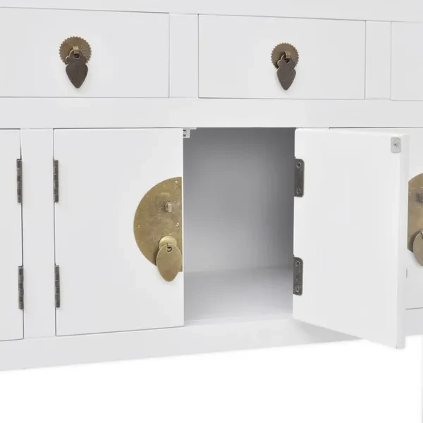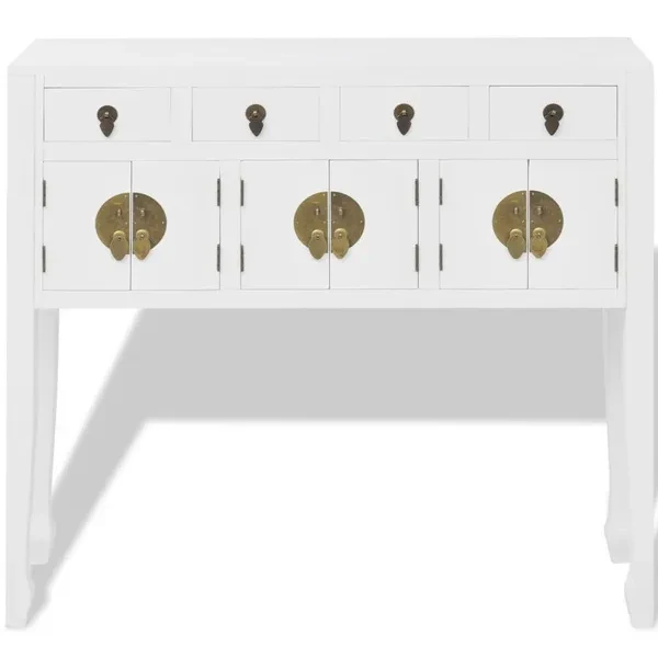 This sideboard, with its classical Asian design, will be a great choice for organising and storing day-to-day items. It is also perfect to be used as a TV cabinet, a high board, a console table, a console cabinet, a side cabinet, a Chinese cabinet. This unique sideboard will make a great addition to your bedroom, study, or even hallway. This sideboard has 4 drawers and 3 cupboards for storing different types of items and trinkets. Constructed from high-quality solid wood with a white paint finish, this sideboard is highly durable. Colour: White Material: Solid wood Dimensions: 95 x 24 x 91 cm (L x W x H) With 4 drawers and 3 cupboards Can also be used as a highboard, a console, a console cabinet, a side cabinet, an Asian cabinet, a Chinese cabinet WARNING: In order to prevent overturning, this product must be used with the wall attachment device provided