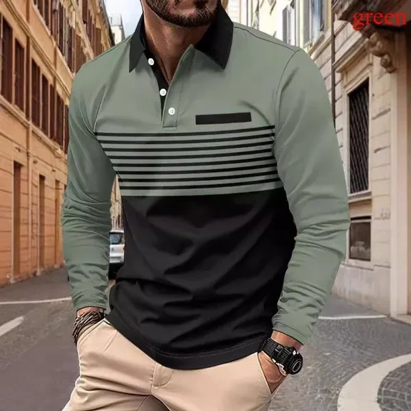 Spring Autumn Fashion Men Striped Patchwork Long Sleeved Tshirts