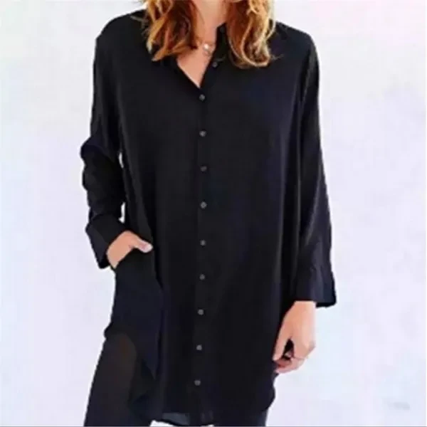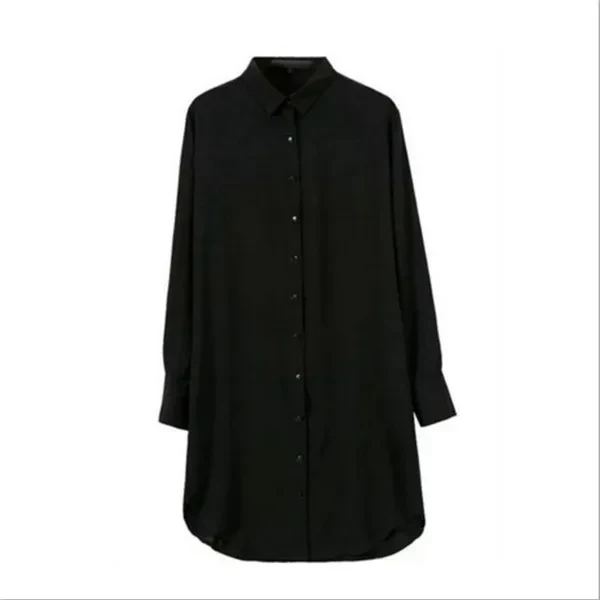 Spring Autumn Fashion Women Solid Long Shirt Dresses Turn Down Collar Long Sleeve Casual Loose Blouses