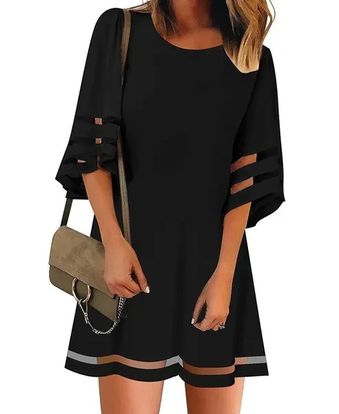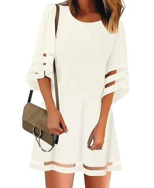Summer Casual Womens Short Sleeves Round Neck Flared Sleeves Dresses Solid Color Loose Dresses Short Dresses Plus Size