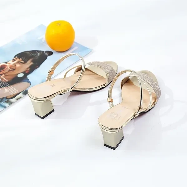 Summer Fashion Women Thick Hig Heels Sandals Peep Toe Causal Bling Beach Slipper Shoes Gold Silver Color Heels 6cm