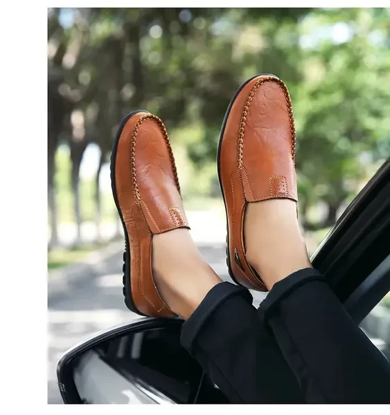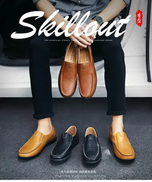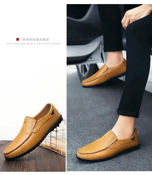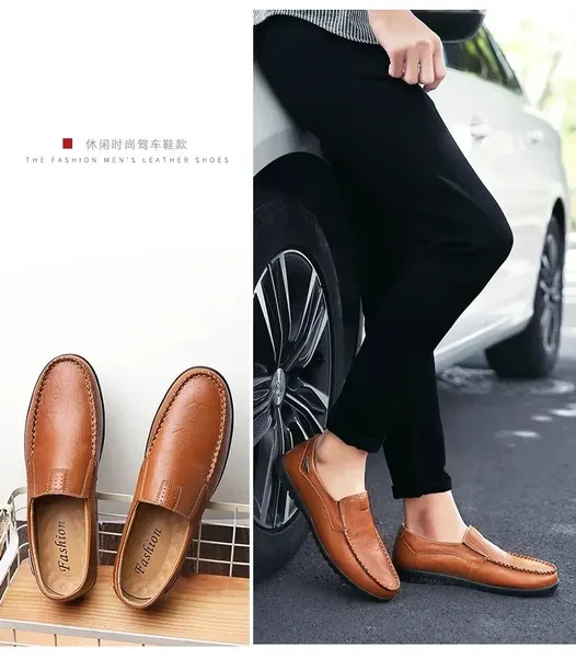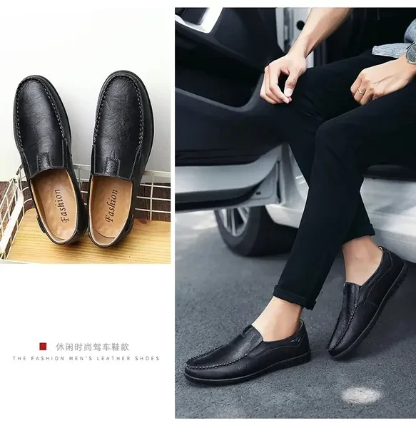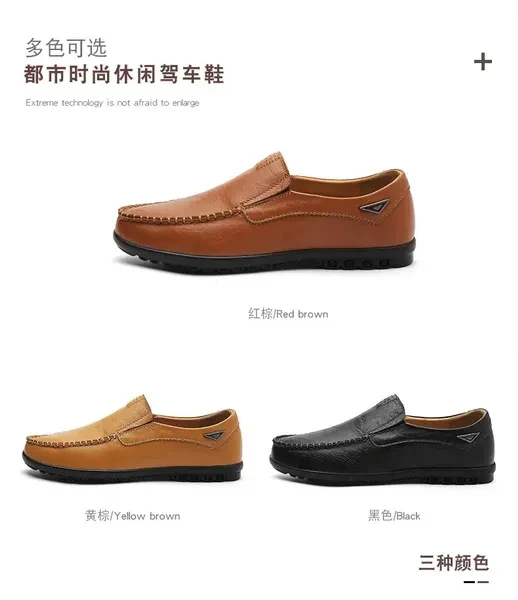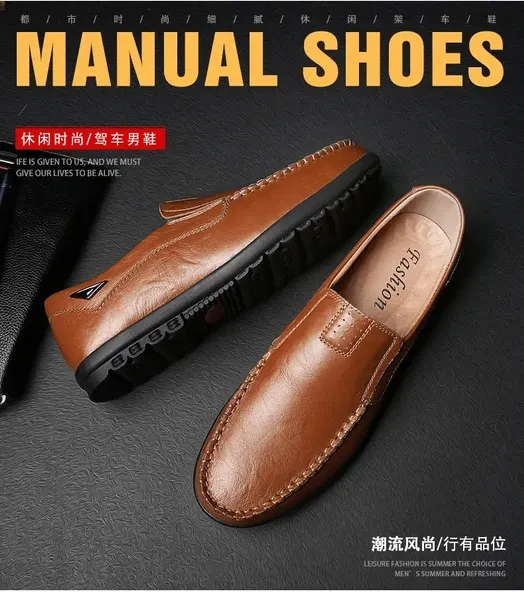 Top Brand Fashion Men's Flat Casual Leather Shoes, Men's Deerskin Peas and Peas Shoes, Men's Walking Peas Shoes, Men's Lazy Driving Shoes, Soft and Comfortable Loafers Size 37-46