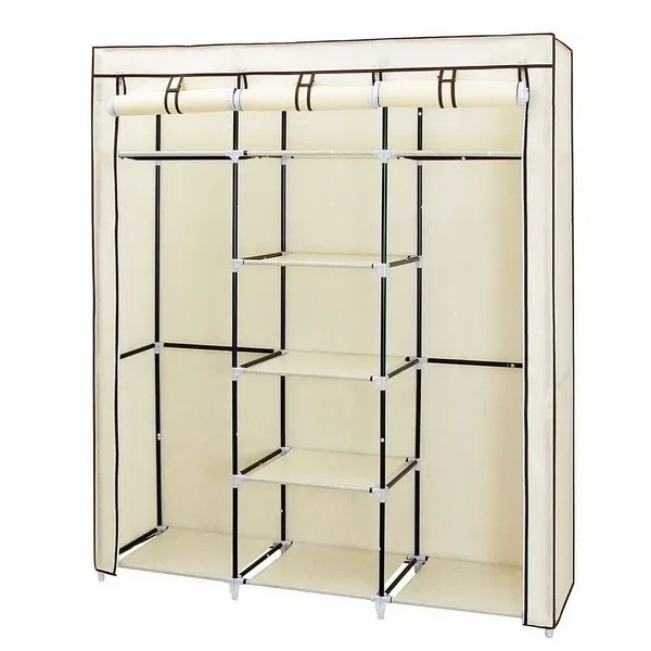 Introductions: Our 69" Portable Closet Storage Organizer Clothes Wardrobe is Made from Selected Non-Woven Fabric Cover, High Quality Steel Tube and PP Plastic Connectors, Which Will Durable and Meet Your Long Term Storage Needs. The Size for The Clothes Wardrobe Makes it Suitable for Organizing Your Small Rooms and Walk-In Closet. Movable Improved Clothes Hanging Rod and 9 Storage Shelves Offers You Enough Space Both for Your Longer Outfits and Folded Clothes. Zippered Dustproof Cover Offered to Keep Your Item Away from Dust and Water-Proof Fabric Tiers are Easy to Clean. It Will be Great Convenient and Functional. Do Not Hesitate to Buy One! Features: 1. STURDY & DURABLE CONSTRUCTION: Made from Selected Non-woven Fabric Cover, Water-Proof Fabric Tiers, High Quality Steel Tube and PP Plastic Connectors, This Portable Storage Closet Will Meet Your Long Term Storage Needs. 2. SPACE SAVING ORGANIZER:Great Size of 59" x 17" x 68 7/8"(149.5x44x174cm), Which Makes it Suitable for Organizing Your Small Rooms and Walk-in Closet. 3. SPACIOUS STORAGE CLOSET: Movable Clothes Hanging Rod and 9 Storage Shelves Offers You Enough Space both for Your Longer Outfits and Folded Clothes. 4. DUSTPROOF COVER & WATER-PROOF TIER: Zippered Dustproof Cover Offered to Keep Your Item away from Dust and Water-proof Fabric Tiers are Easy to Clean. 5. CONVENIENT TO USE & ASSEMBLE: This Amazing Closet Makes Your Clothes or Daily Accessories Easy to Access; Installation is just Easy, no Tool Required. Specifications: 1. Item Name: 69" Portable Clothes Closet Home Wardrobe Clothes Storage Organizer with Shelves 2. Material of the Home Wardrobe: Non-Woven Fabric Cover, Steel Tube And Plastic Connection 3. Dimension of Home Wardrobe: 59" x 17" x 68 7/8"(149.5x44x174cm) 4. Color of Home Wardrobe: Black / Beige / Gray / Dark Brown Package Includes: 1 x Portable Closet 1 x Instruction Notes: 1. Please make sure all poles reach the bottoms of plastic connector holes. 2. Please be careful during assembly and dis-assembly.