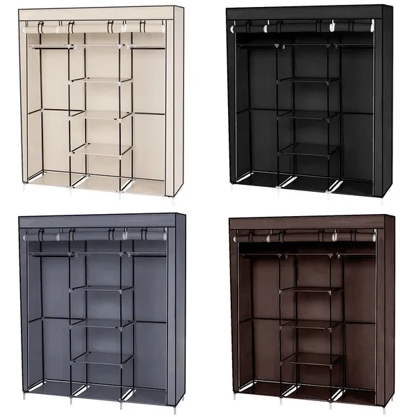 Triple Door Clothes Fabric Wardrobe Hanging Rail Storage Organizer