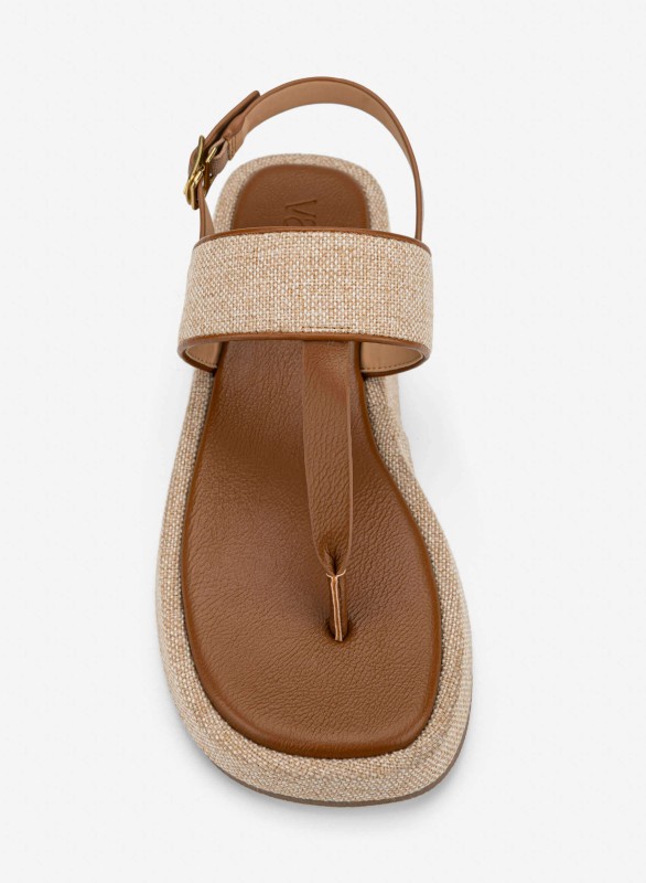 Tweed T-straps Sandals Slippers - SDL 0349 - Brown