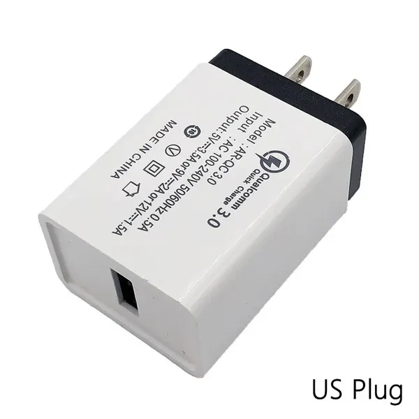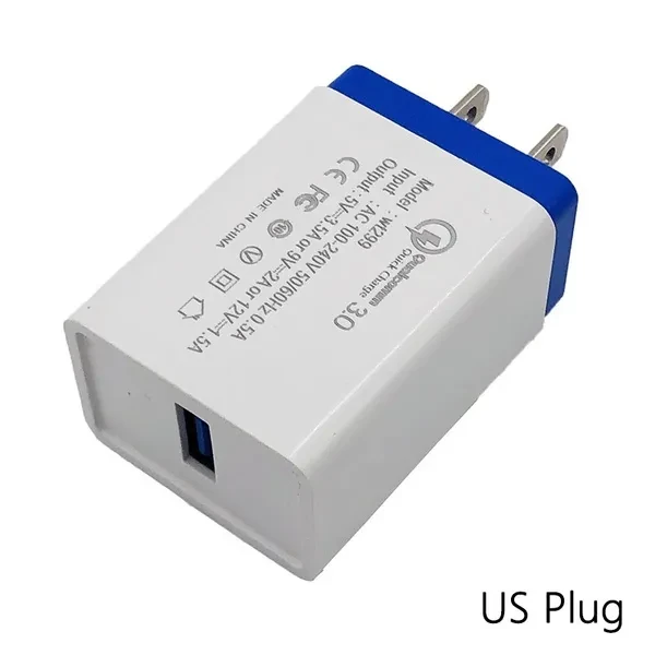 Package include: 1x QC3.0 fast charger Feature: 1.Color: blue, black, 2.Product parameters: 12V-1.5A/9V-2A/5V-3.5A, intelligent identification 3.Product size: 9*3.5 CM 4.Specifications: US regulations (flat plug), European regulations (round insert) 5.Technology: protection against overcurrent/overvoltage/overload/short circuit 6.Stable support for IOS & Android systems, support for mainstream models in the market Note: 1.Please allow 1-3cm error due to manual measurement. pls make sure you do not mind before you bid. 2.Due to the difference between different monitors, the picture may not reflect the actual color of the item. Thank you!