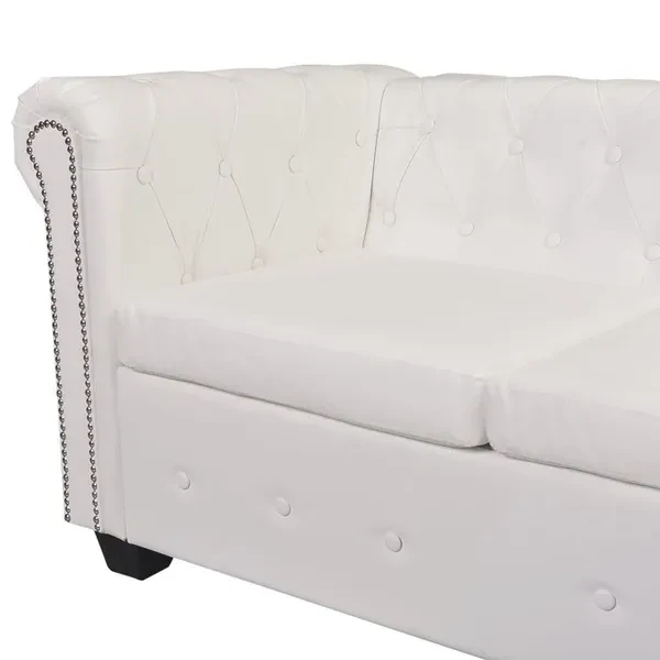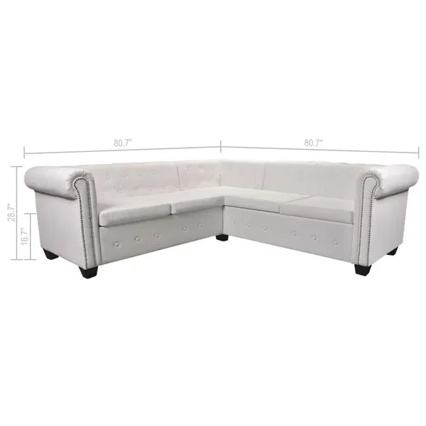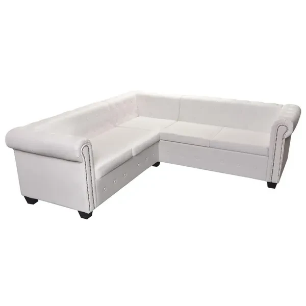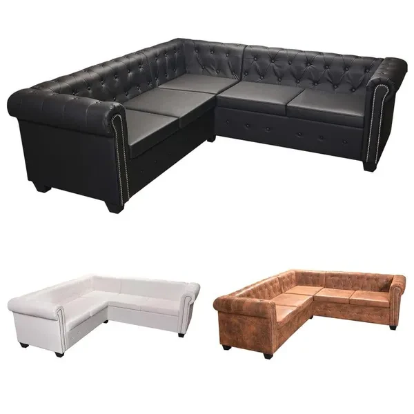 This Chesterfield corner sofa is the perfect blend of comfort and sophistication and will make a great addition to any home or office. This 5-seater sofa, with its tufted and studded detailing and gracefully curved arms, will add a touch of luxury, class and style to any interior.