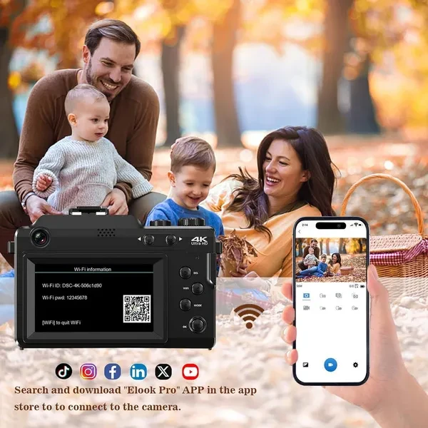 Package includes: Digital Camera * 1 1500MAH Lithium Battery * 1 USB Cable * 1 English Manual * 1 32G TF Card* 1 Black Shell* 1 Product Features: 48MP Front Lens (F/2.2 f=2.0mm)/13MP Rear Lens Dual Camera Design3 inch HD Screen/EIS Anti ShakeExposure Value:-3.0 EV - +3.0 EVSelfie Timer: Off/2S/5S/10SDetachable And Replaceable Outer Shell (The screws and screwdriver is included.)48MP/4K Video Recording/18X Digital ZoomInbuilt Fill Light For Dark Light ShootingTime-lapse/Slow Motion Recording/Motion CaptureAutomatic Focus/Clear HDMI OutputGrided Photography CompositionRecording while charging (The camera can be powered and charged by power bank while charging.)Wireless WIFI Function (By downloading our App and connect your phone with camera , you can control the camera wirelessly for photography and video recording , and share them in your social media account. Beside you can also fetch and transmit the former photos and videos in the camera withou any OTG flash drive.) ​Webcam Function: 4K 30 FPS UHD Video Recording For Youtube Tiktok Streaming And Vlog Recording ( With merely a piece of USB Cable,the camera can be connected to your PC,and used as Youtube Facebook livestream webcam )Standard Hot shoe interface For External Microphone / Flash Light