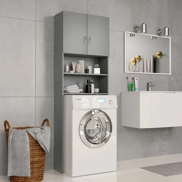 Washing Machine Cabinet Grey 64x25.5x190 cm Chipboard Waschmaschinenschrank Wasmachine kabinet armoire machine à laver
