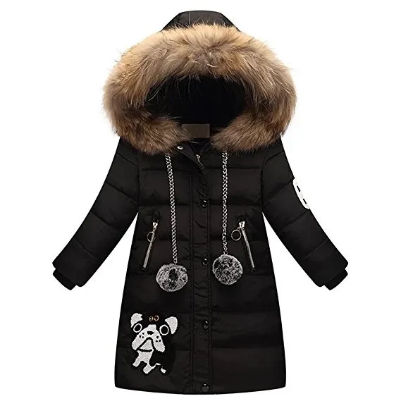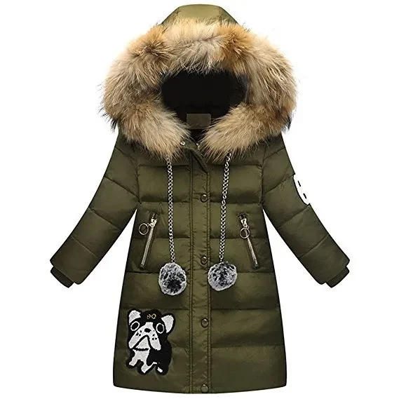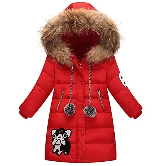 Winter Fashion children Big Girl's Cartoon Dog Down Jacket Kids Hooded fur Parka Coat Long Winter Jackets