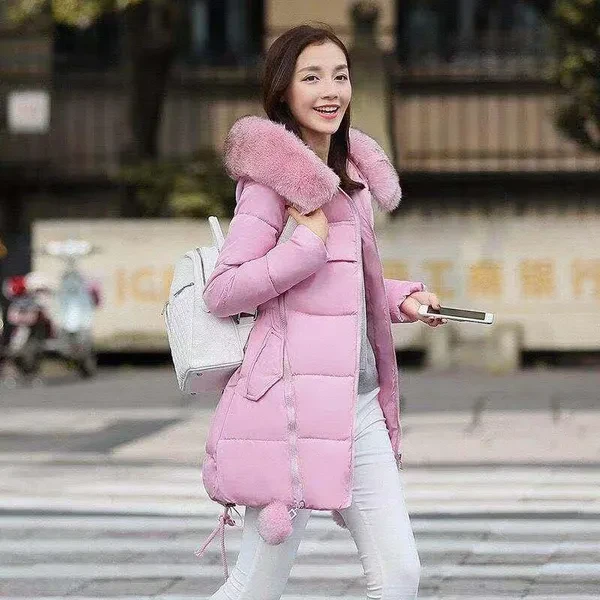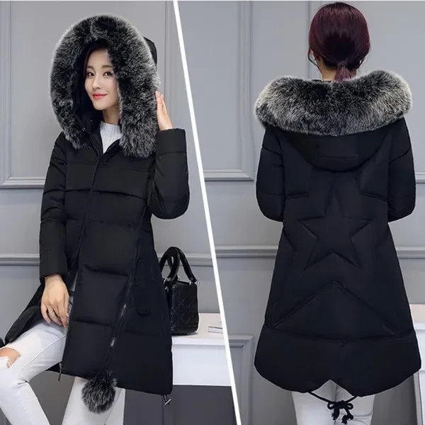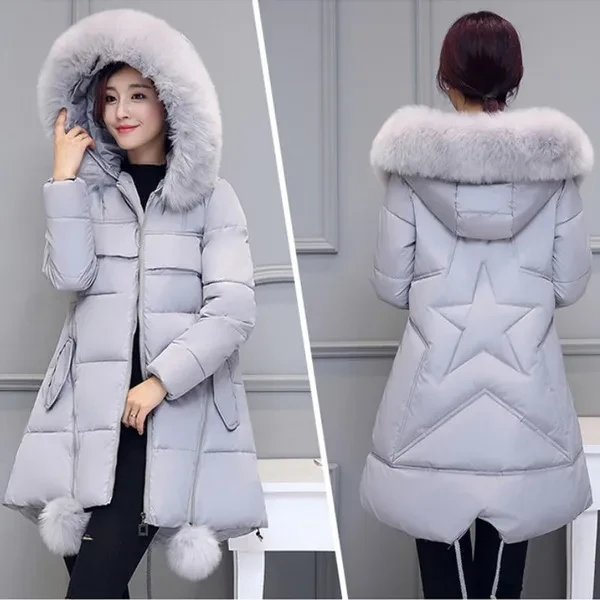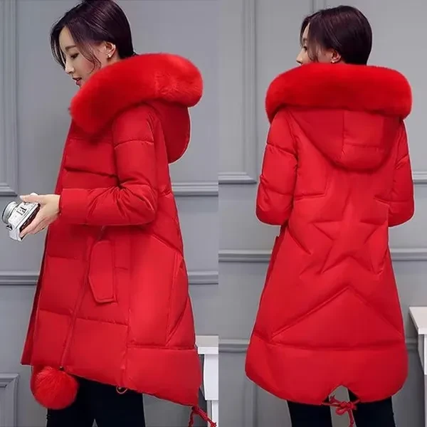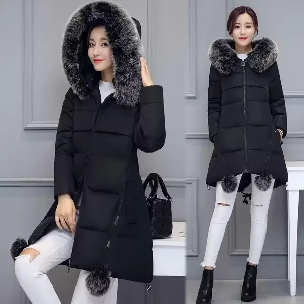 Woman's Fashion Winter Jacket Fur Collar Hooded Cotton Coat Ladies Warm A Word Cloak Type Jacket