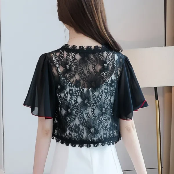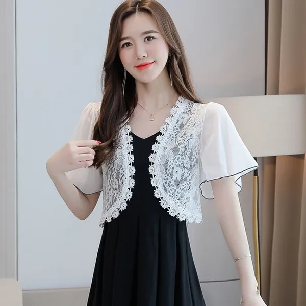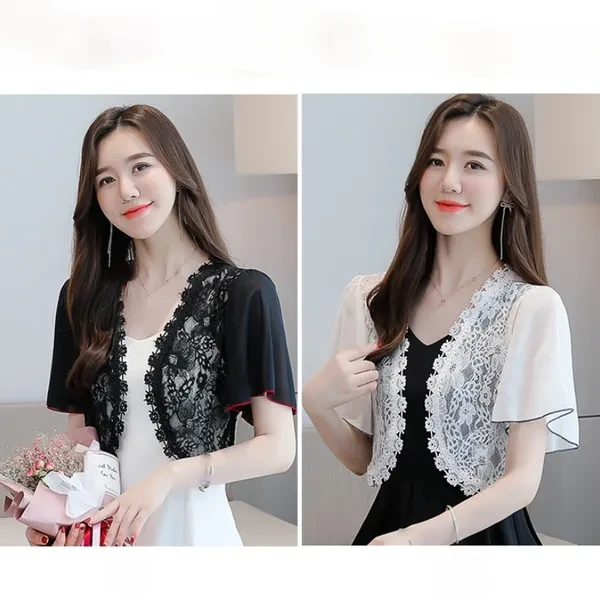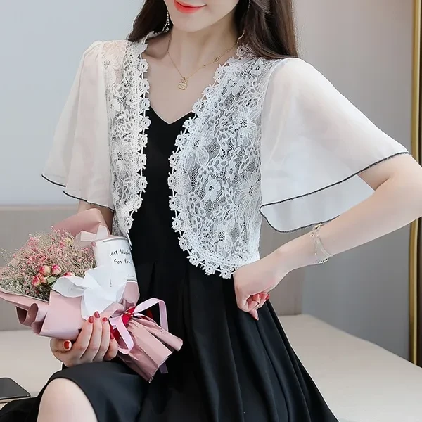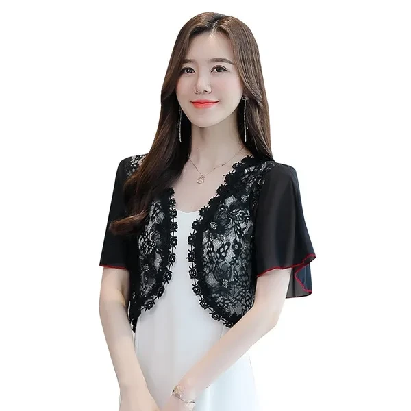 Women Lace Shawl Hollow Out Shrug Bolero Capelet Cardigan Cape Short Sleeve Summer Tops