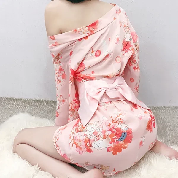 Women Lingerie Japanese Cat Kimono Bathrobe Anime Cosplay Yukata VCZ