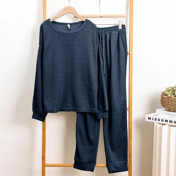 Women's 2 Piece Outfits Fashion Crew Neck Long Sleeve Pullover Top Wide Leg Pants Lounge Matching Sets Tracksuits Sweatsuit