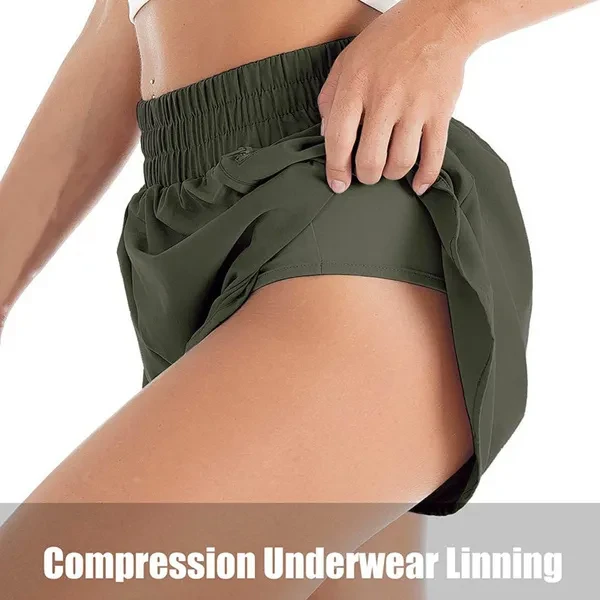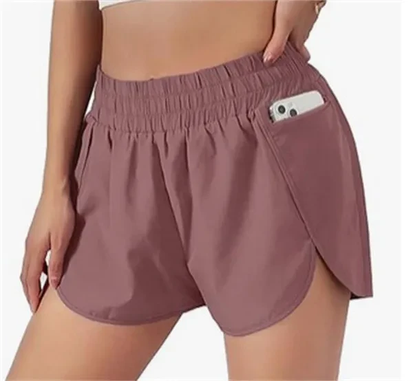 Women's Athletic Shorts Female Running Shorts Pocket Sporty Short Gym Elastic Workout Shorts