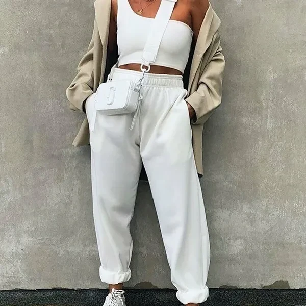 Women's Fashion Loose Casual Solid color Long pants high waist Summer harem pants sport pants joggerpant