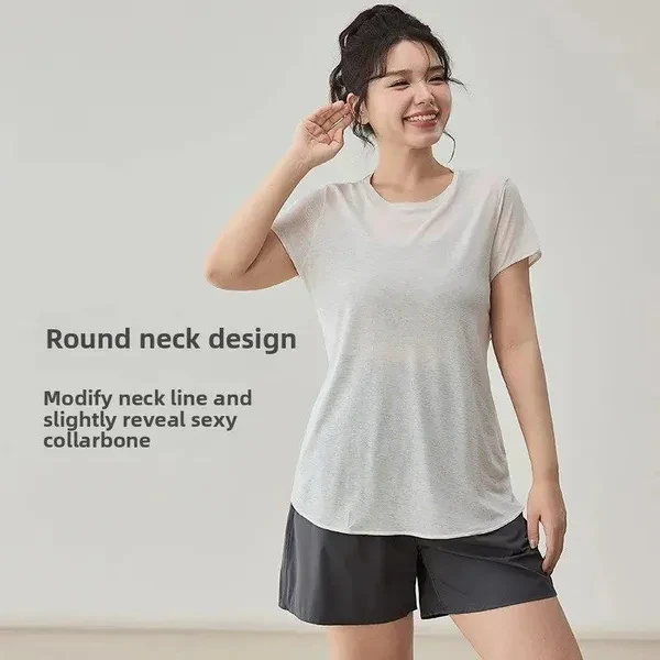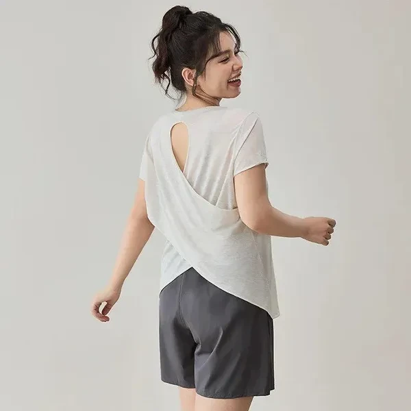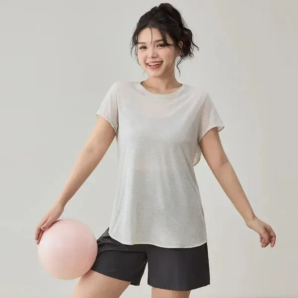 Women's Yoga Top – Breathable Backless Sports Tee, Plus Size Activewear for Pilates, Running, and Fitness Training