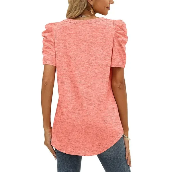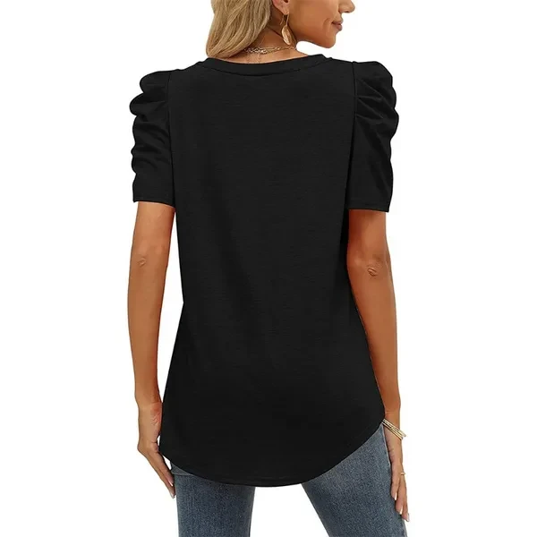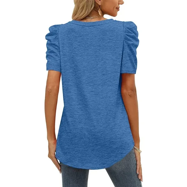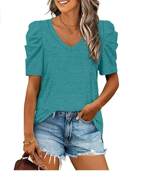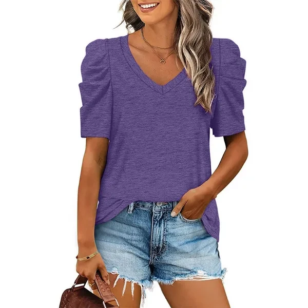 XS-8XL Plus Size Fashion Clothes Women's Casual Summer Tops Puff Short Sleeve Tee Shirts Cotton Pullovers Blouses Ladies Fashion V-neck Solid Color Loose T-shirts Blouse Tops