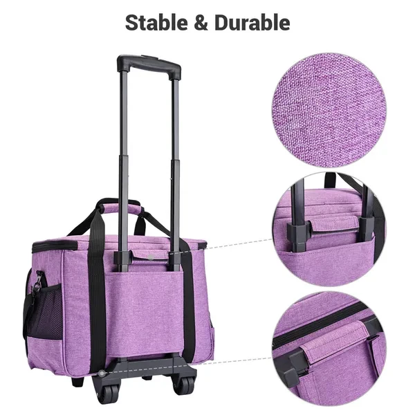 Features: - Portable & Flexible - Sewing machine case features 16 15/16"x9 13/16"x12 3/16" size & 4.85 Lbs light weight for easily taking out anytime & anywhere; 3 carrying ways: dragging by detachable trolley with telescoping handle, hand carrying by sturdy handle and shoulder carrying by adjustable anti-slip strap - Spacious Main Compartment - With 15 13/16" x 8 1/16" x 10 5/8" large internal space & large weight capacity, it is suitable for most standard sewing machines of different brands for storage & protection; Wide opening design for easy access to put in and take out - Multiple Pockets for Organization - Front bag with 7 mesh pockets for threads, 2 transparent zipped pockets for needles, buttons or fabric samples and several different-size pockets for scissors or measuring tools; 1 large transparent pocket under lid for clearly displaying each item; 2 mesh pockets on the sides for easy access to necessary things - Sturdy & Durable - Hook and loop for firmly attaching and fixing frame to the bag; Aluminum alloy trolley and heavy-duty wheels for maximum durability; Firm polyester with wear-resistance, provides full protection and serves long time - Wide Application - Suitable for sewing beginners, professional tailors, hobby sewers or fashion designers to protect their machine from dust & scratch, to easily storage the necessaries in order, or to carry their sewing machines for classes, work, holiday or trip anytime Specifications: - Overall Dimension of Case: 16 15/16" x 9 13/16" x 12 3/16" (43 x 25 x 31 cm) - Case Material: Polyester - Net Weight: 4.85 Lbs (2.2 kg) Package Contents: - 1x Sewing Machine Case with Trolley Dolly - 1x Strap - 1x Bottom Pad